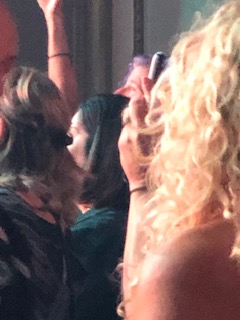 We finally get in the theater and find our seats, along with the accompanying cast of characters we’ve grown accustomed to seeing at these things. Our new friend Winnie Tok Fan, who is sort of excited to see us, tells us that the “mean girls” are in the audience. How fetch! But here comes Quadrangle Hair, Tree Girl, Bette Midler, and Orange Glasses.  Or at least that’s how we know them.  We typically lump this group of “loyal” fans under one name – The Encroachers.  Encroachers are those fans who slowly invade your personal space with the idea of nudging you out of the way and getting closer. You know the ones. You synchronize your watches, get online an hour before tickets go on sale, and eat dog food for a week to afford the best tickets, only to have the chicks from the cheap seats slither on down to get in front of you.  Tonight they are hanging out right at the stage, just chatting and taking approximately one million photos of one another, probably with the cute drum set in the background.  I lean over to Sam and ask her just how many pictures of each other do you need? She and I have been friends for over 45 years and I think I have three photos of the two of us.  At the same time, Moe comes in from the other side and asks me the same question.  I mean, every 5 minutes these chicks get the amazing idea that a group photo is a novel idea and maybe will distract the rest of us from the fact that they’re Encroachers.  Listen, babes, I’ve been to enough of these that I know that what you’re up to.  You’re hoping that by standing where you are that the show will start and you’ll be right up front with nowhere else to go. We get it.