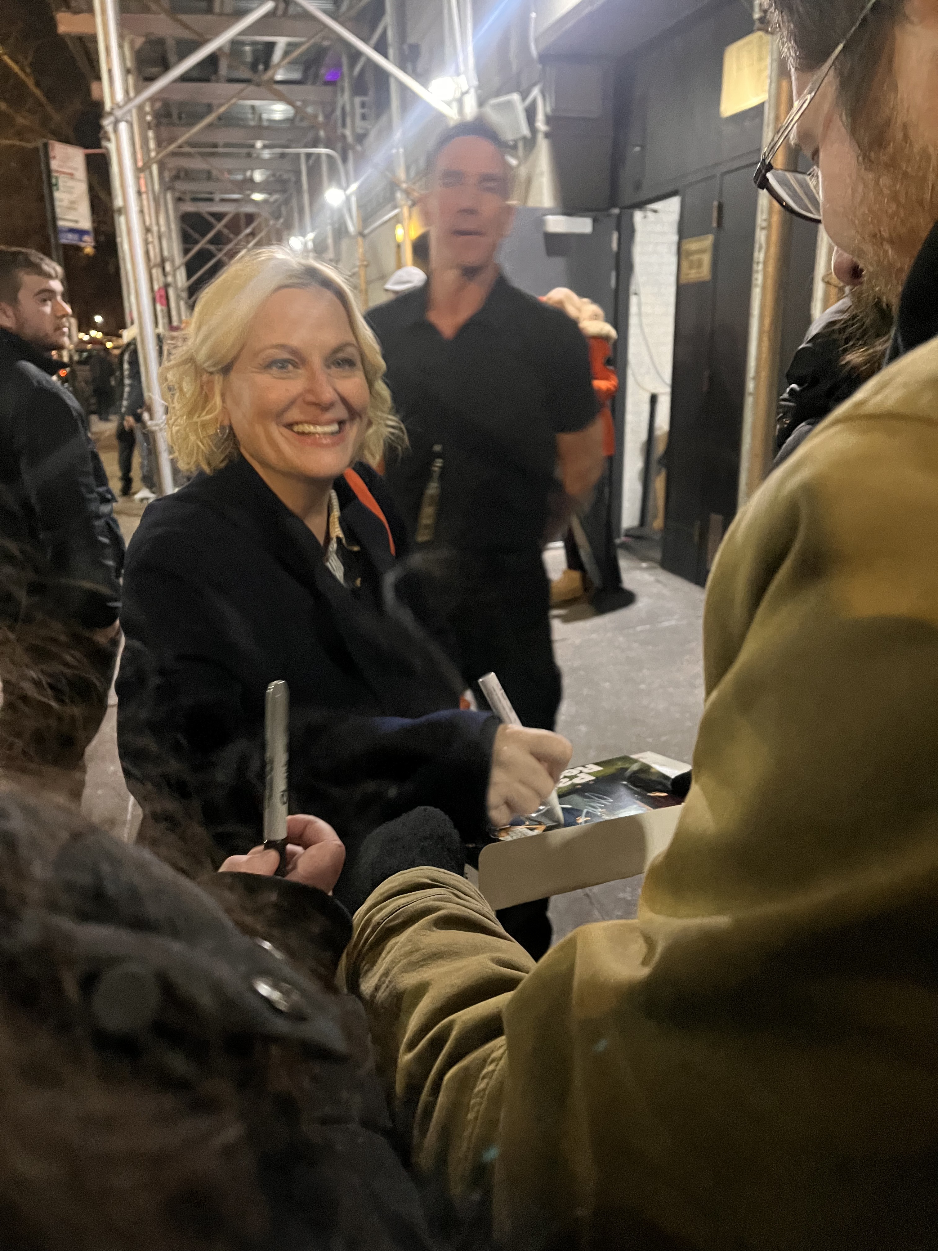 So Sam and I arrive in what I was expecting to be a quaint little town to find it is really more of the armpit of Westchester County. We drive around the sad labyrinth of this burg, wondering how many taco restaurants one really needs in a place this small, and wondering how our GPS can be telling us we are literally in front of a brewery when all we see is a Metro North parking lot.  Something’s brewing all right, and it’s Sam’s rage.  She pulls into an Italian restaurant and tells me to go inside and ask where she should be parking.  Please don’t make me do this, I beg. I am getting nervous that she is going to call it quits and go home, when after about 30 minutes of circling the theater in some deranged Griswoldian nightmare, we see the huge sign that reads “EVENT PARKING” directly across the street.  I shell out $25 and let out a sigh of relief.